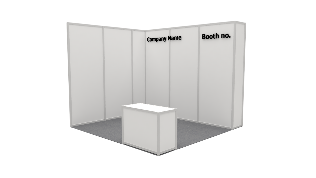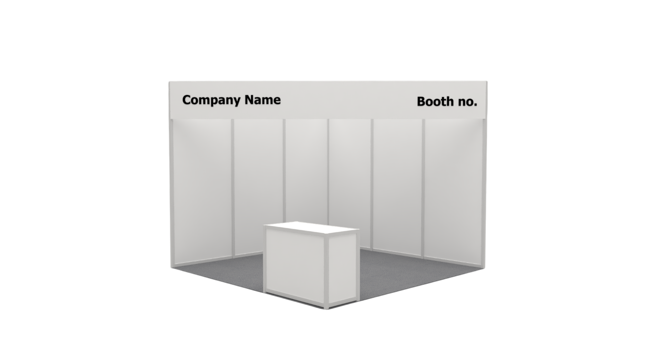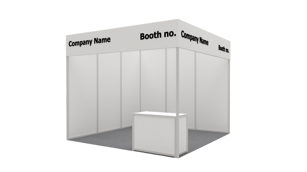 3m X 3m 攤位製作,套裝包括牆身和展枱印刷及安裝服務,高度為2.5m